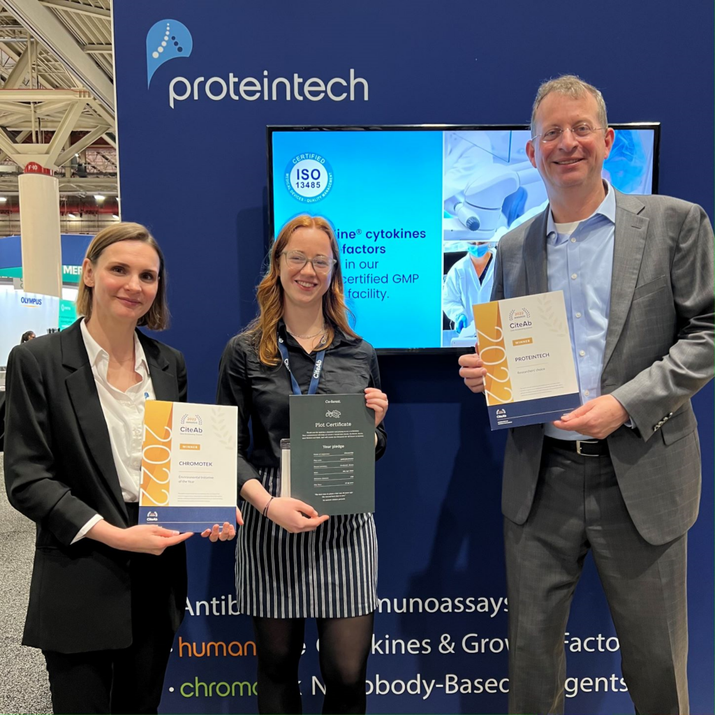 Proteintech 的產品深受全球研究人員喜愛,有高達 15 萬篇論文使用 Proteintech 的產品,並獲得 2022 年 CiteAb Awards 中的最佳研究人員選擇獎 (researchers choice award)。