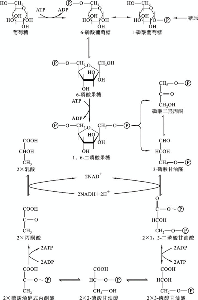 糖代謝可分為分解代謝和合成代謝兩個方面,生物體內的糖代謝基本過程相類似。糖的分解代謝是指糖類物質(主要為葡萄糖)分解成小分子物質的過程。在此過程中釋放出大量的能量,以供生命活動使用。同時在分解過程中形成的某些中間產物,又可作為合成脂類、蛋白質、核酸等生物大分子物質的原料(作為碳架)。