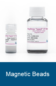 MagStrep Beads (Strep-Tactin® XT coated magnetic beads)用於小規模純化→ 僅用於批量純化→ 優良的Strep-Tactin® XT塗層,可在低背景下實現高效結合→ 靈活的洗脫(Elution)條件 — 在變性條件下通過在SDS gel loading buffer中煮沸,或在原生(native)條件下用生物素洗脫→ 針對批量純化進行優化→ 可以用磁性裝置分離珠子,無需離心→ 適用於 96 孔盤純化