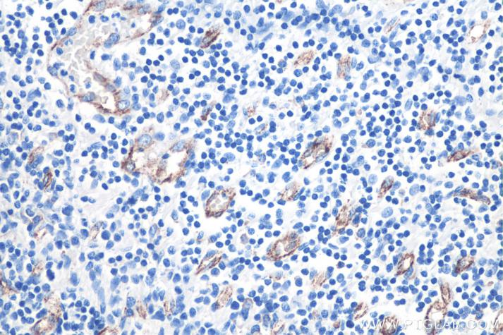 IHC analysis of human tonsilltis tissue with Proteintech’s VWF rabbit polyclonal antibody (27186-1-AP). Protease-induced epitope retrieval was performed by incubating at 37°C for 5 minutes in Protease K Antigen Retrieval Buffer (PR30014).