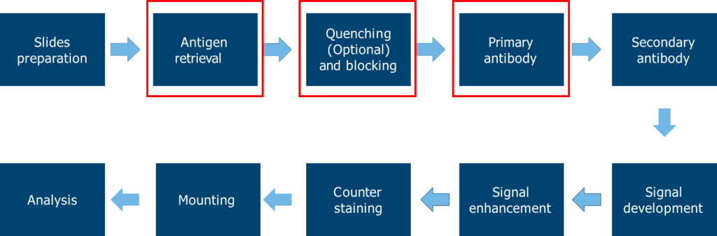 以下是在 IHC 實驗的早期階段應首先考慮優化的重要步驟: