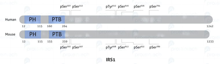 例如IRS1,按人的胺基酸序列和按鼠的胺基酸序列同一修飾位點,命名卻不一樣。人類Ser307和小鼠Ser302對應的是同一個位點,以及後面的Ser312等依此類推。值得注意的是,如果研究的是人類Ser307位點的修飾,而購買了以小鼠為免疫原Ser307的磷酸化抗體,則和所要研究的位點不一致,研究結果也不可預期了。在此蛋白中也要注意的是,同樣是612位點,在人類和小鼠的胺基酸序列卻不一樣。
