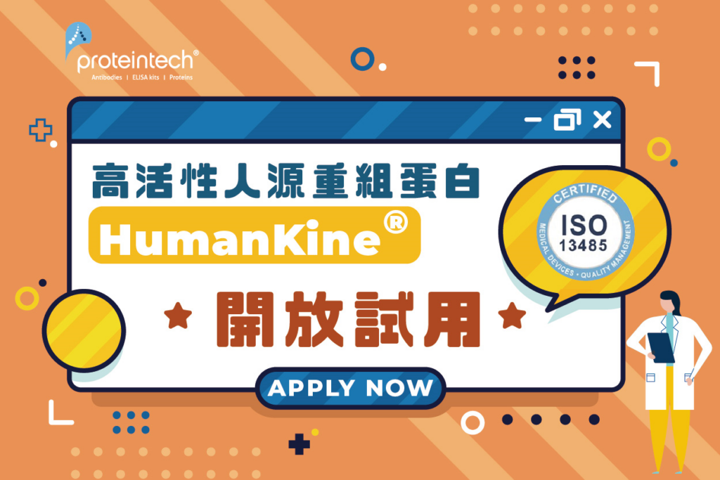 Proteintech 提供 RUO-grade 試用包裝申請 ( 2ug ),讓您切身體會 HumanKine 所帶來的種種優勢!