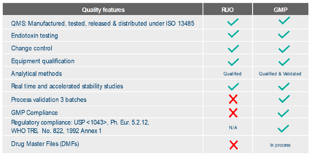 • RUO 等級提供可靠的產品,在早期研發期間更具成本效益。