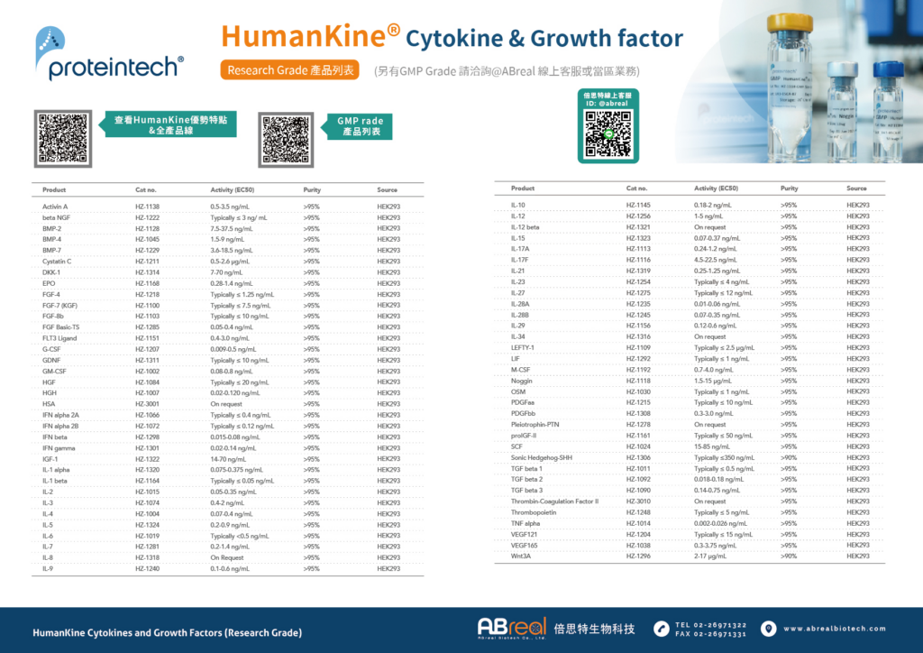 【Proteintech】HumanKine® ( Cytokines & Growth Factors) 開放試用囉!