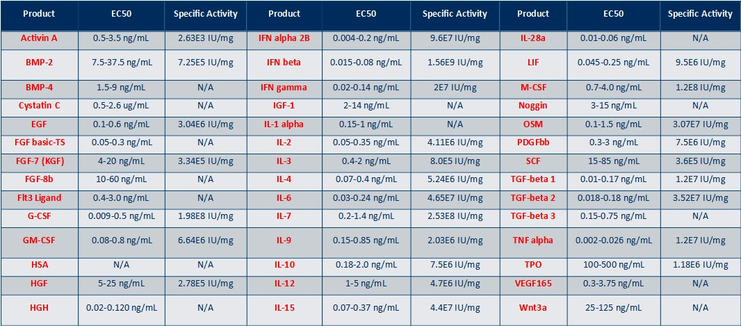HumanKine® GMP recombinant proteins offer safety, purity, stability, and potency to use in ex vivo manufacturing processes, as defined in USP (United States Pharmacopeia) Chapter 1043 Ancillary Materials for Cell, Gene, and Tissue-Engineered Products, Growth Factors and Cytokines Used in Cell Therapy Manufacturing, WHO TRS, No. 822, 1992 Annex 1 Good Manufacturing Practices for Biological Products.