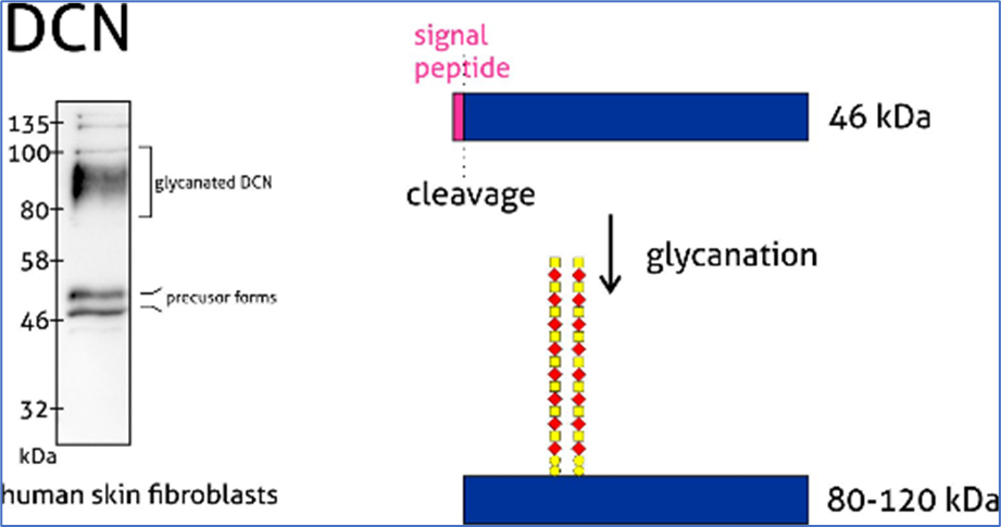 Fig. 4 Decorin (Cat No. 14667-1 -AP) 在非聚醣化狀態的分子量為 43-47 kDa,聚醣化狀態的分子量為 80-120 kDa。