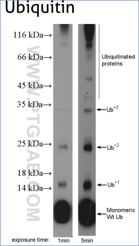 Fig. 6 Ubiquitin B (UBB, Cat No.10201-2-AP) 該基因是由三個無間格的泛素編碼序列重複組成,是非溶酶體胞內的異常蛋白質降解與正常蛋白質的快速周轉所必需的泛素,作用過程需要依賴 ATP 。