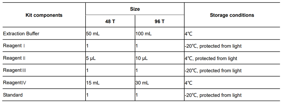 | CheKine™ Micro Plant Oligomeric Proantho Cyanidins (OPC) Assay Kit | 0.39 mg/g | KTB1520 |