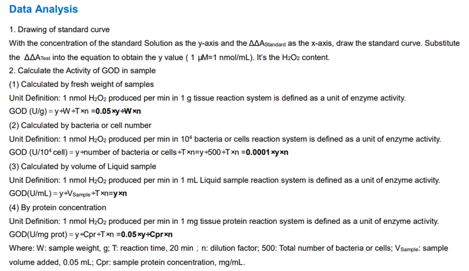 | CheKine™ Micro Glucose Oxidase Activity (GOD) Assay Kit | 0.05 U/L | KTB1310 |