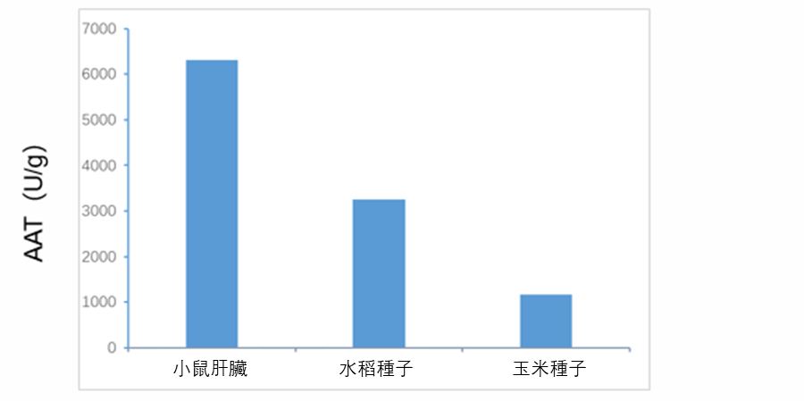 ▲Figure. 試劑盒測定小鼠肝臟、水稻種子和玉米種子中的AAT活性。