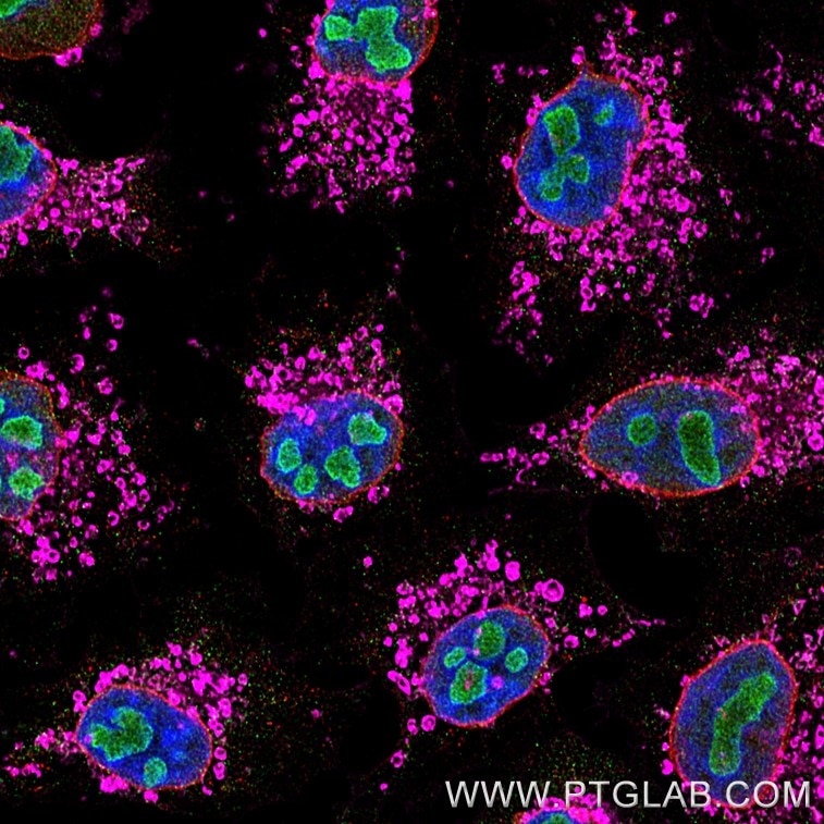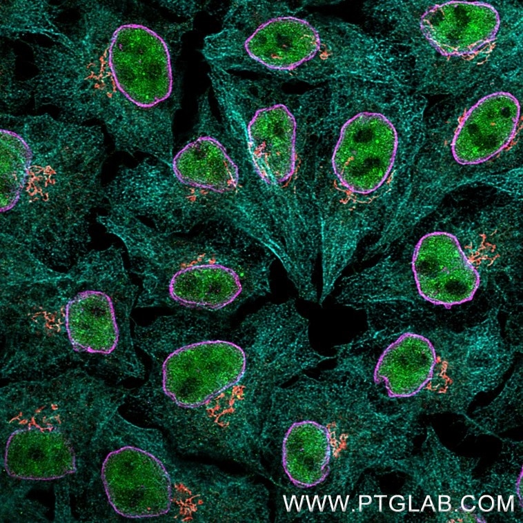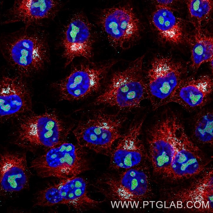 | anti-Lamin (12987-1-AP) ➜ FlexAble 2.0 CoraLite® Plus 555 Kit (KFA502) | anti-B23 (60096-1-Ig) ➜ Multi-rAb CoraLite® Plus 488 (RGAM002) |