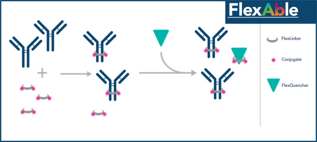 FlexAble 是 Proteintech 研發的一種新型抗體標記試劑盒,該試劑盒採用 FlexLinker 抗體標記技術專利,可在任何抗體緩衝液條件下,快速將螢光染料、酶以及其他分子與抗體結合,極大提高流式細胞儀、免疫螢光及免疫印跡實驗效率。