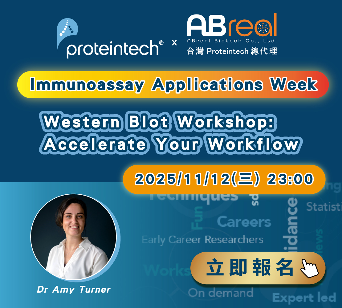 本次研討會將由 Proteintech 的 Dr. Amy Turner, Scientific Liaison 主持,非常適合實驗室新手或任何希望優化實驗技術的人員。