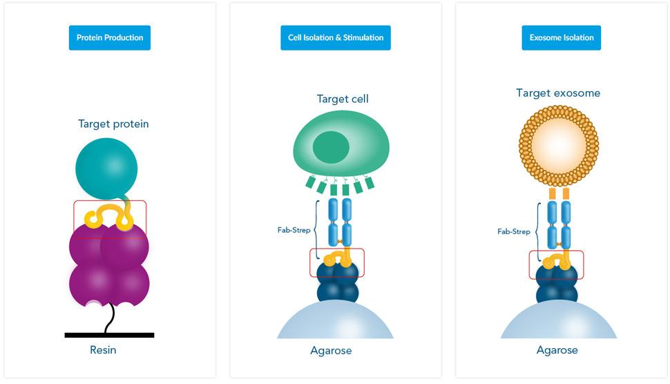 IBA為重組蛋白的整個生產過程提供了解決方案,包含從Clone, Transfection, Protein expression and purification, 到Protein detection, Immobilization 和Analysis。同時還提供用於免疫學研究的新工具,包括用於細胞以及外泌體(Exosome)分離的tag相關試劑系列產品。