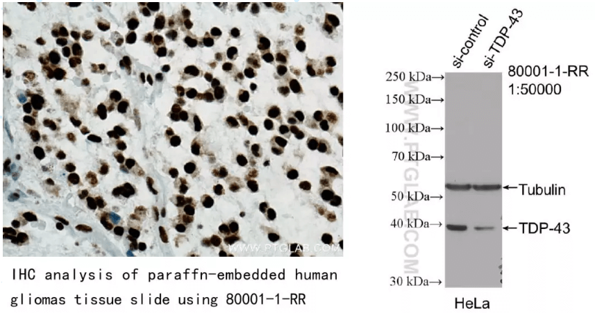 如今TDP-43 重組兔單抗(貨號:80001-1-RR)已經正式上線,