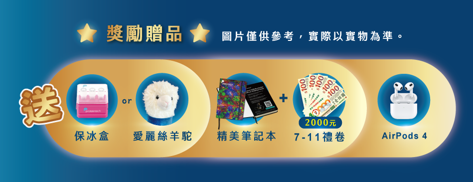 每成功推薦五位,可再獲贈【精美筆記本】乙份 & 【7-11禮卷 2000 元(100元面額)】-可加價換購 “Proteintech產品“